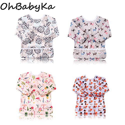 防水スモック 子供 エプロン 長袖 防水ビブ 防汚 絵画 食事用エプロン スタイ 遊び 料理作り用 ポケット付き ベビー 赤ちゃん 4枚セット 幼稚園 離乳食 保育園 入園準備 女の子 男の子 兼用 (ZY06082226)
