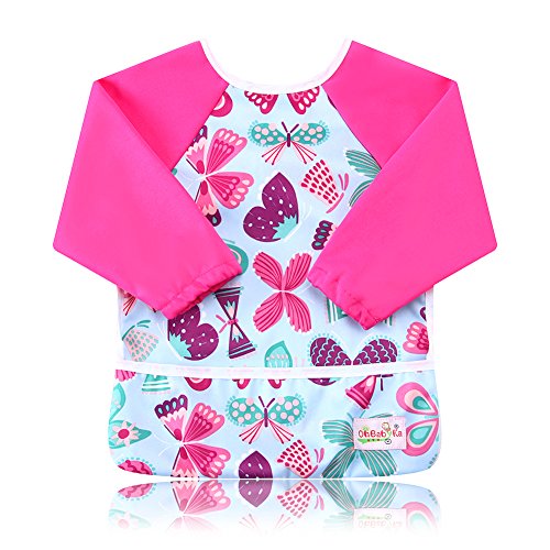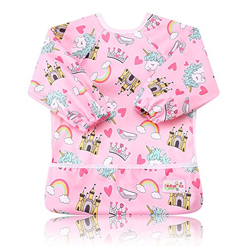 防水スモック 子供 エプロン 長袖 防水ビブ 防汚 絵画 食事用エプロン スタイ 遊び 料理作り用 ポケット付き ベビー 赤ちゃん 4枚セット 幼稚園 離乳食 保育園 入園準備 女の子 男の子 兼用 (ZY04242728)