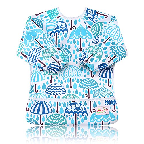 - 柔らか素材の袖付き防水お食事エプロン。でお手入れ楽ちん