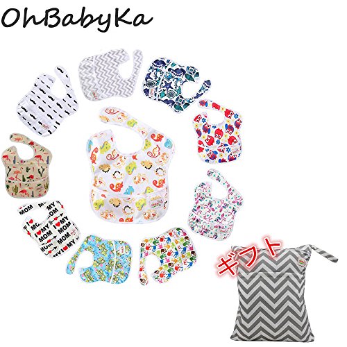 Ohbabyka油が落ちるスタイ10点セット スーパービブ 柔らかくて軽量 洗濯機で洗えてすぐ乾く よだれかけ お食事エプロン スタイ 袖なしタイプ お食事用防水ビブ 撥水 6~24ヶ月 男の子 女の子 保育園 出産祝い ギフト有り (SZY01020304060708101317NPD18)