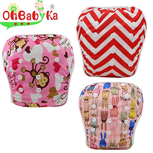 OHBABYKA遊びパンツ 0-3歳 べビー 赤ちゃん用 ボタンでサイズ調整可能 防水外層 ポリエステルメッシュ内層 オムツカバー スイミング教室 公園 海水浴 温泉旅行 水着 スイムウェア 女の子 男の子 男児 女児 オムツ機能付 スイムパンツ3枚セット (YK021726)