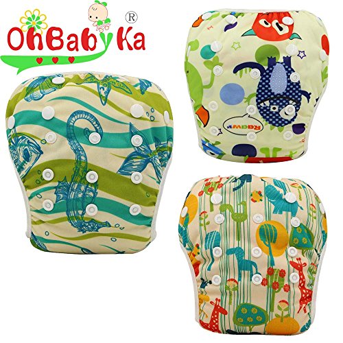 OHBABYKA遊びパンツ 0-3歳 べビー 赤ちゃん用 ボタンでサイズ調整可能 防水外層 ポリエステルメッシュ内層 オムツカバー スイミング教室 公園 海水浴 温泉旅行 水着 スイムウェア 女の子 男の子 男児 女児 オムツ機能付 スイムパンツ3枚セット (YK394243)