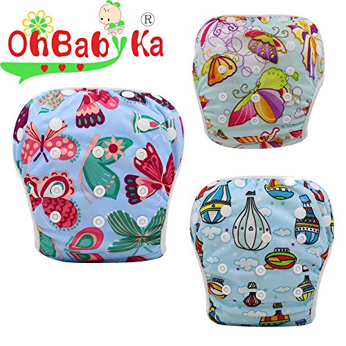 OHBABYKA遊びパンツ 0-3歳 べビー 赤ちゃん用 ボタンでサイズ調整可能 防水外層 ポリエステルメッシュ内層 オムツカバー スイミング教室 公園 海水浴 温泉旅行 水着 スイムウェア 女の子 男の子 男児 女児 オムツ機能付 スイムパンツ3枚セット (YK052527)