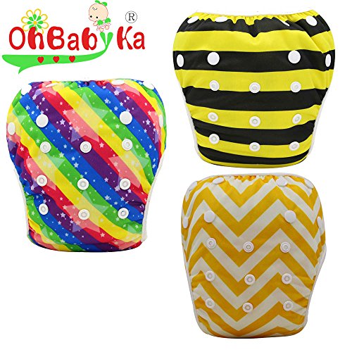OHBABYKA遊びパンツ 0-3歳 べビー 赤ちゃん用 ボタンでサイズ調整可能 防水外層 ポリエステルメッシュ内層 オムツカバー スイミング教室 公園 海水浴 温泉旅行 水着 スイムウェア 女の子 男の子 男児 女児 オムツ機能付 スイムパンツ3枚セット (YK192937)