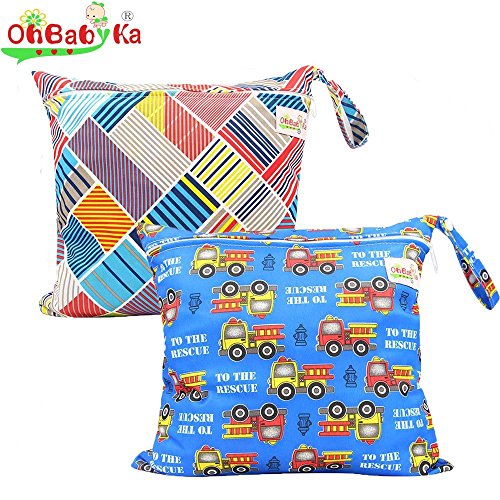 Ohbabykaおむつポーチ マルチポーチ おむつ入れ おしりふき オムツポーチ 出産祝い 消臭&抗菌 折りたたみ 簡単収納 おしりふきケース おしりふきポーチ2点セット (NPG0304)