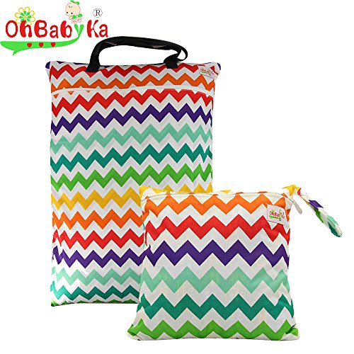 Ohbabykaウェットバック(防水バッグ) 2点セット おむつ ポーチ オムツ おしりふき 着替え タオル 水着 お風呂用品 食事セット入れ マルチ収納 お出かけ 温泉 スポーツ 消臭ポーチ (LJD02NPG09)
