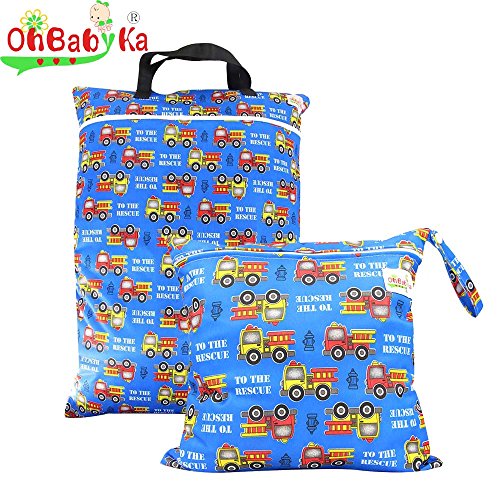 Ohbabykaウェットバック(防水バッグ) 2点セット おむつ ポーチ オムツ おしりふき 着替え タオル 水着 お風呂用品 食事セット入れ マルチ収納 お出かけ 温泉 スポーツ 消臭ポーチ (LJD09NPG03)