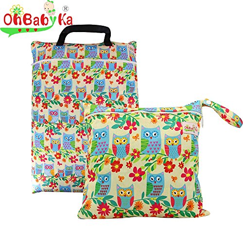 Ohbabykaウェットバック(防水バッグ) 2点セット おむつ ポーチ オムツ おしりふき 着替え タオル 水着 お風呂用品 食事セット入れ マルチ収納 お出かけ 温泉 スポーツ 消臭ポーチ (LJD07NPG02)