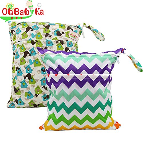 Ohbabykaウェットバック(防水バッグ) 可愛い 2点セット オムツ 着替え タオル 水着 お風呂用品 食事セット マルチ収納 温泉 スポーツジム ショッピングモール 大活躍 マナーポーチ トラベルポーチ 防水 ママバッグ 消臭ポーチ付き (NPD1623)