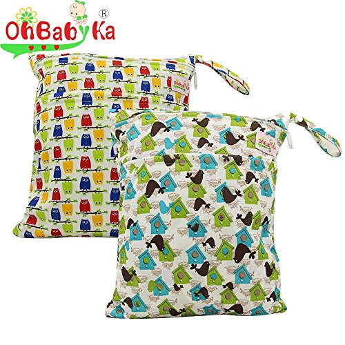 Ohbabykaウェットバック(防水バッグ) 可愛い 2点セット オムツ 着替え タオル 水着 お風呂用品 食事セット マルチ収納 温泉 スポーツジム ショッピングモール 大活躍 マナーポーチ トラベルポーチ 防水 ママバッグ 消臭ポーチ付き (NPD2023)