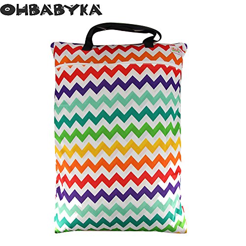 OHBABYKAウェットバック(防水バッグ) おむつポーチ おむつバッグ 防水ポーチ 抗菌 消臭 可愛い オムツ おしりふき 着替え タオル 水着 お風呂用品 食事セット入れ マルチ収納 ショッピングモール 温泉 スポーツジムに活躍 洗える 再利用可能な ベビー 布おむつ バッグ (LJD02)