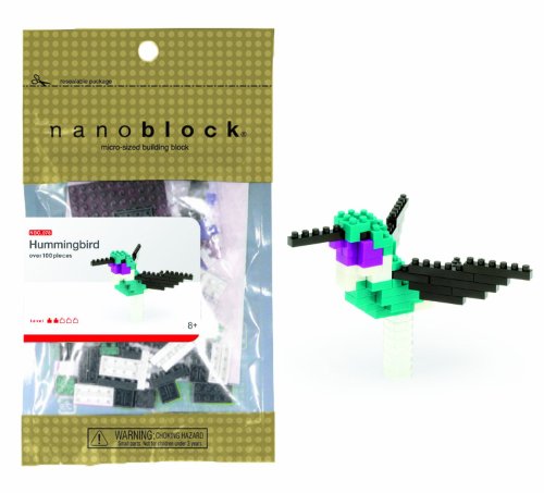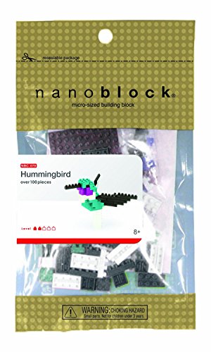 Create 3D works of animal art with nanoblock! These micro-sized building blocks will enable you to execute even the finest details like never before! With over 100 assorted size pieces, you will be amazed as this Humming Bird takes shape right beneath your fingertips! With a finished size of 3.5" w x 3.5" d x 2.75" h, this Humming Bird is able to fit perfectly in the palm of your hand. Includes detailed color instructions. Not designed for children under age 8. Level of Difficulty: 2 (on a scale of 1-5 with 5 being the most difficult) The smaller the block the better the detail. With many different animals in our nanoblock "mini +" collection, you will be inspired to collect, build, and display all your works of art!.