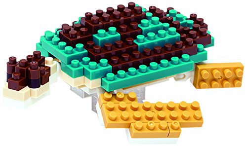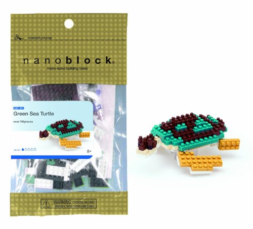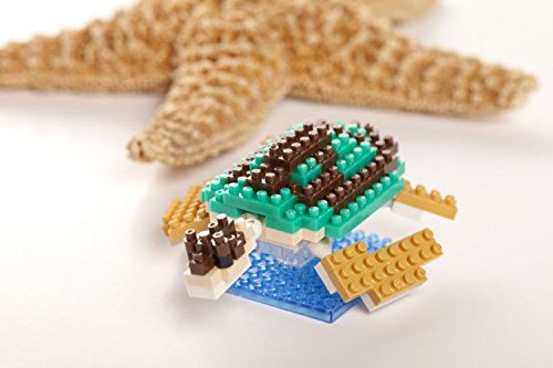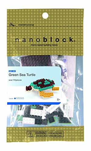 Create 3D works of animal art with nanoblock! These micro-sized building blocks will enable you to execute even the finest details like never before! With over 110 assorted size pieces, you will be amazed as this Green Sea Turtle takes shape right beneath your fingertips! With a finished size of 3" w x 3" d x 1.5" h, this Green Sea Turtle is able to fit perfectly in the palm of your hand. Includes detailed color instructions. Not designed for children under age 8. Level of Difficulty: 1 (on a scale of 1-5 with 5 being the most difficult) The smaller the block the better the detail. With many different animals in our nanoblock "mini +" collection, you will be inspired to collect, build, and display all your works of art!.