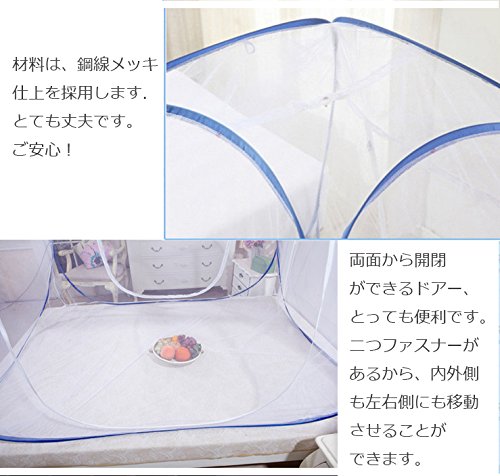 - 面倒な組み立て不要なワンタッチ蚊帳、広がる便利で赤ちゃんのベッドにも使用可能なゆったりサイズです。