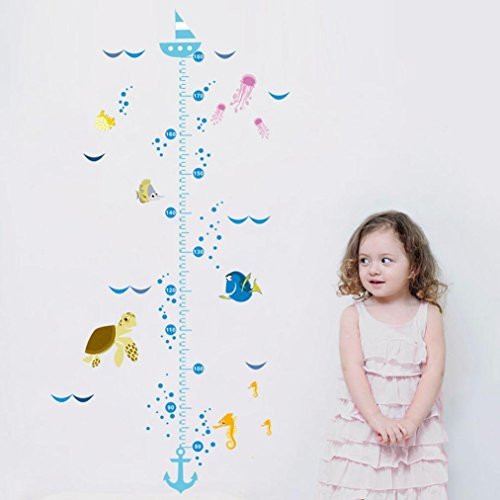 壁ステッカー、子供oksale漫画魚高さ測定チャートインテリア・ペーパーデカール装飾防水PVCリムーバブル寝室リビング子供部屋ホーム背景アップリケ壁画