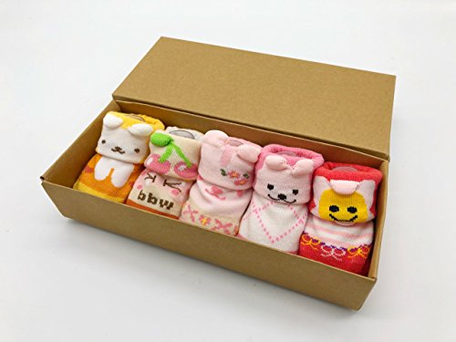 Old Pal 出産祝い ベビーソックス [5組 ] ギフトセット かわいい 新生児 アニマル 柄 (無地女の子)