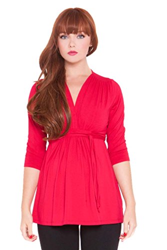 Olianルーシー3 / 4スリーブVネックマタニティトップ US サイズ: XS カラー: レッド