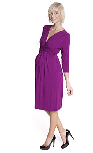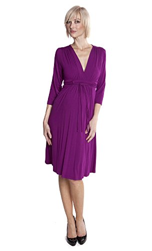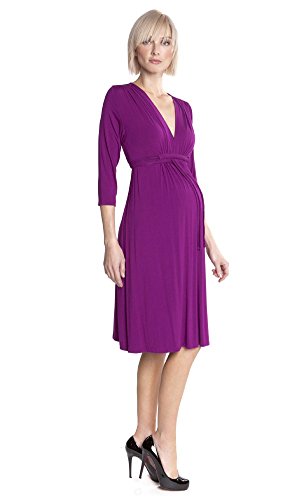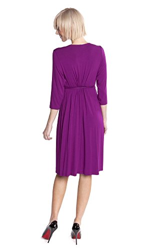 Vネックの肩シャーリング7分袖レーヨンニットドレスでOlian
