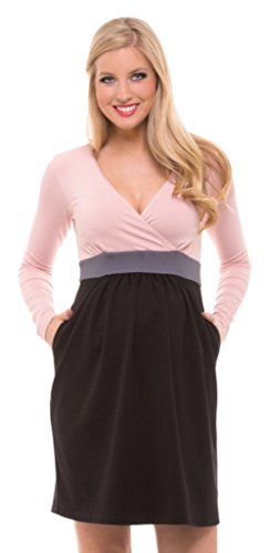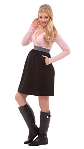 から別のPONTEクラシックマタニティドレスOlianマタニティ。この魅力的なスタイルでは、引き続きで最高の秋/冬用マタニティドレスVネックスタイルとピンク、グレーバンドEmpireとソリッドのブラックPonteスカートでできています。あなたのベビーシャワーまたは休日サクッと任意のその他の特別な機会に最適です。65 / 30 / 5ポリエステル/レーヨンスパンデックストップ – 95 / 5レーヨン/スパンデックスPonteスカートでできています。bellabluマタニティクラシックスタイリッシュマタニティドレス