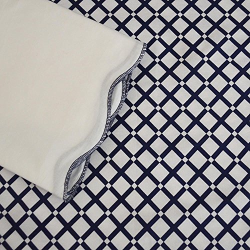 100% cotton navy and white fitted crib sheet;Scallop white crib skirt with navy trim;Crib skirt measures 52 x 28 with a 14 drop;Machine washable, dryer safe; warm iron