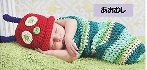 【On Dolce】選べる7種類 かわいい 着ぐるみ コスチューム ベビー 用 出産祝い ・ 百日記念 ・ 記念撮影 にも (あおむし)