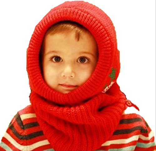 【On Dolce】 選べる4色 ネックウォーマー フード 付き フードウォーマー ニット帽 マフラー ベビー キッズ 赤ちゃん 子 子供 用 かわいい 防寒 BN003 (レッド)