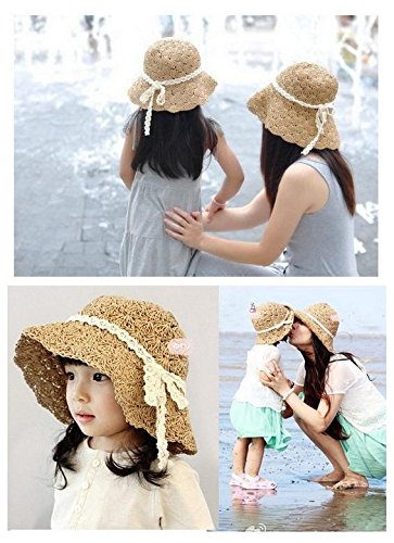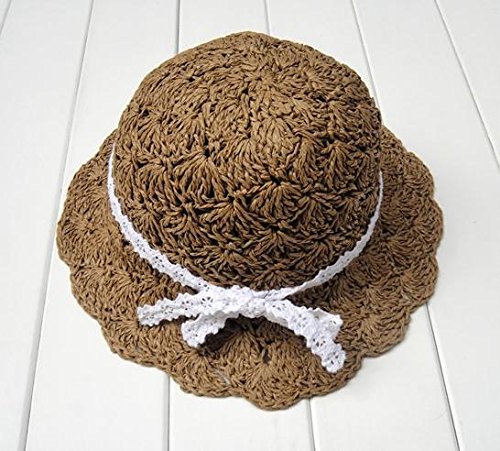 【On Dolce】 畳める かわいい 麦わら帽子 ストローハット キッズ 子供 女の子 用 ガーリー レトロ クラシック BH001 (ブラウン)