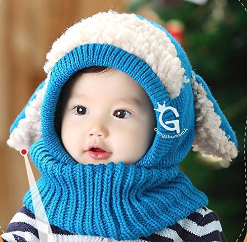- ベビー & キッズ 用 かわいい うさぎちゃん風 ニット帽 です。首まで保護してあったか、マフラーいらず♪