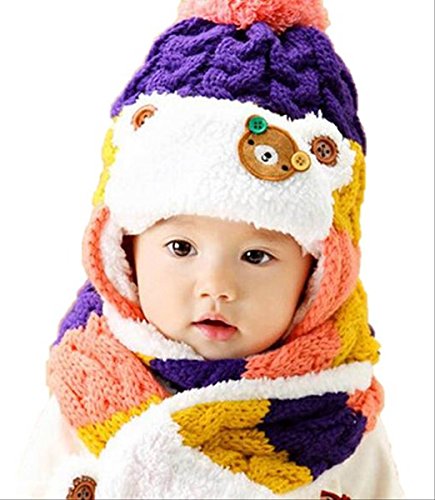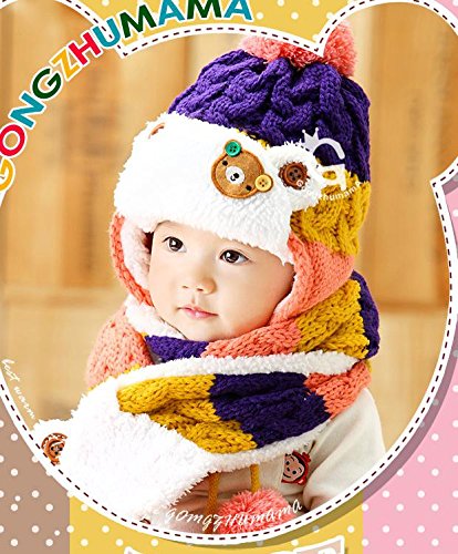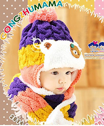 On Dolce 選べる4色 ニット帽 & マフラー ニット帽子 ベビー キッズ 赤ちゃん 子 子供 用 かわいい 防寒 BN004 (パープル系)