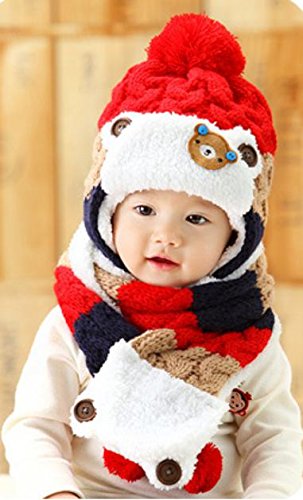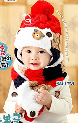 On Dolce 選べる4色 ニット帽 & マフラー ニット帽子 ベビー キッズ 赤ちゃん 子 子供 用 かわいい 防寒 BN004 (レッド系)