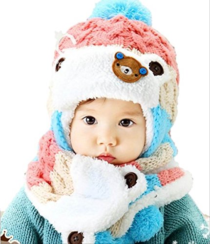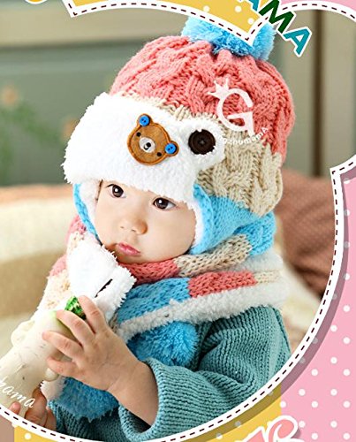 On Dolce 選べる4色 ニット帽 & マフラー ニット帽子 ベビー キッズ 赤ちゃん 子 子供 用 かわいい 防寒 BN004 (ピンク系)