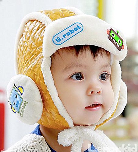 - ロボットをモチーフにした秋冬用帽子です。内部はもこもこのボア素材、耳あてもついてとっても暖かいです。