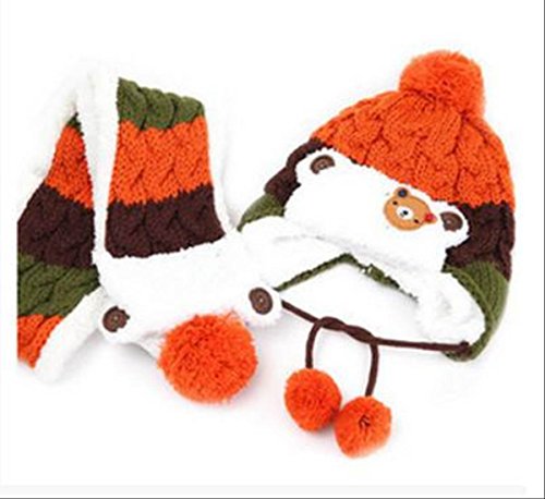 On Dolce 選べる4色 ニット帽 & マフラー ニット帽子 ベビー キッズ 赤ちゃん 子 子供 用 かわいい 防寒 BN004 (オレンジ系)