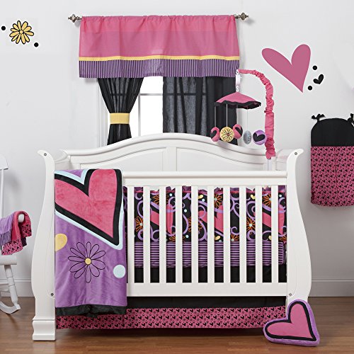 - One Grace Place Sassy Shaylee Infant Crib Bedding Set, Black/Pink/Purple