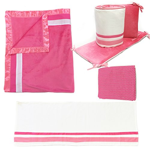 - One Grace Place Simplicity Infant Crib Bedding Set, Hot Pink/White, 4 Piece