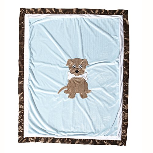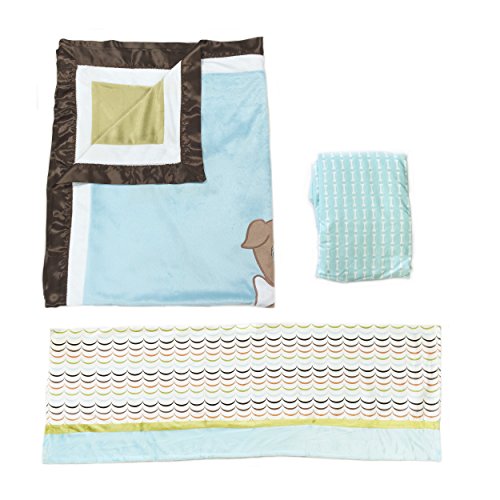 - One Grace Place Puppy Pal Boy Infant Crib Bedding Set, Powder Blue/Sage Green