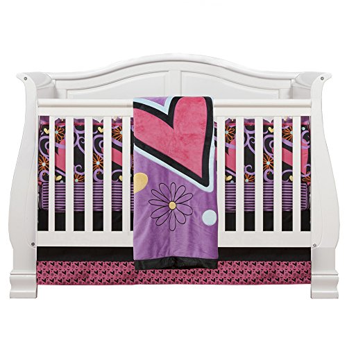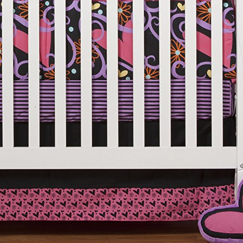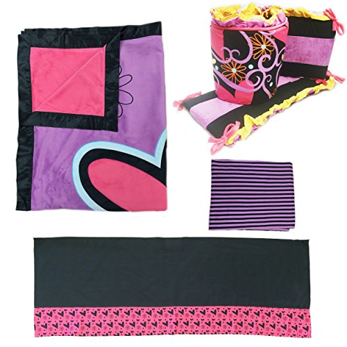 • One Grace Place Sassy Shaylee Infant Crib Bedding Set, Black/Pink/Purple, 4 Piece