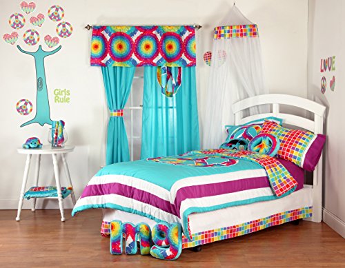 One Grace Place Terrific Tie Dye Canopy (Mesh), Aqua Blue, Royal Blue, Purple, Yellow, Green, Orange, Pink, Red and White by One Grace Place