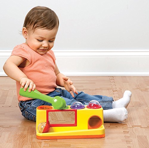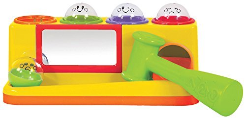 Pounding toys are terrific fun, and terrific for coordination, too! Toddler love hammering the balls through the color-coded chutes, then watching them drop and roll. Learning bonus: each ball wears a different facial expression, helping kids identify emotions (which they'll then mimic in the strategically-placed mirror)! For ages 12 months and up.