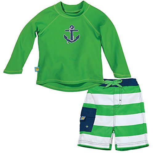 One Step Ahead Sun Smartiesベビー幼児用男の子長袖ラッシュガードと用おむつTrunks カラー: グリーン
