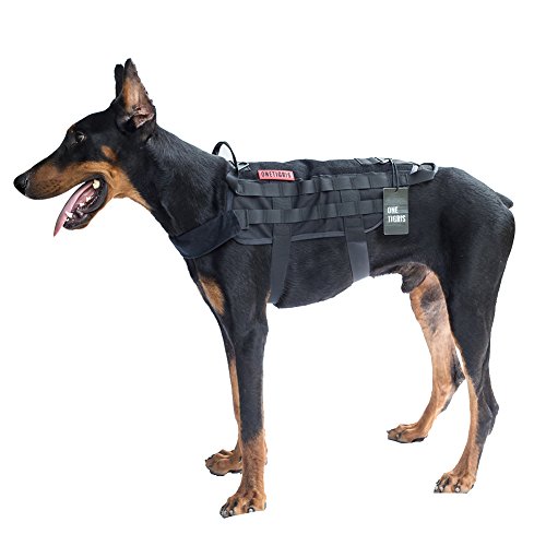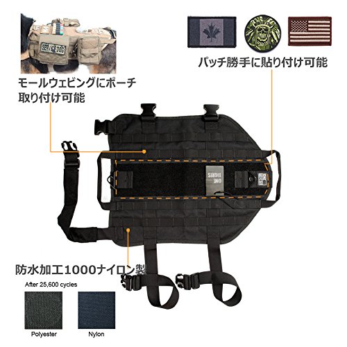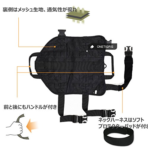 OneTigris ペット犬用サバゲーベスト 犬ベストハーネス 胴輪MOLLE対応 サイズS/M/L/XL 大中小型犬対応 ( ブラック-A, L)