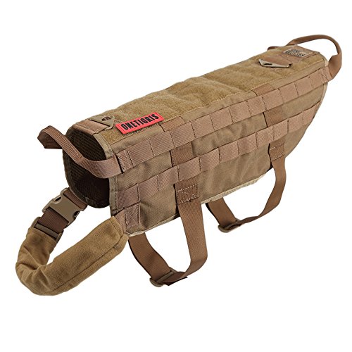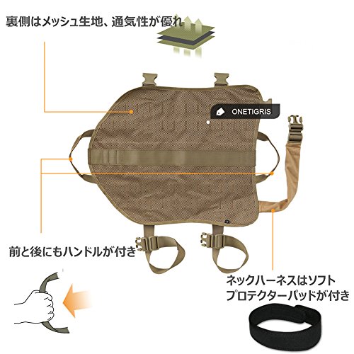 OneTigris ペット犬用サバゲーベスト 犬ベストハーネス 胴輪MOLLE対応 サイズS/M/L/XL 大中小型犬対応 (ブラウン, L)