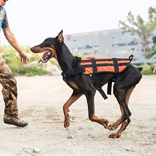 OneTigris ペット犬用サバゲーベスト 犬ベストハーネス 胴輪MOLLE対応 サイズS/M/L/XL 大中小型犬対応 (オレンジ色, L)