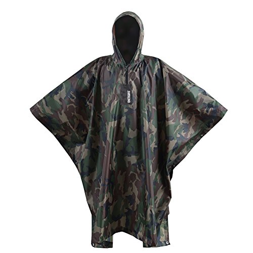 OneTigris レインコート 多機能 ポンチョ・タープ・マット兼用 軽量 災害時・雨雪の日 (ウッドランドカモ)