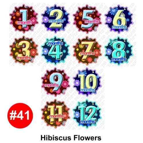 Hibiscus Flower onesie stickers great baby shower gift!;Adhesive sticker is super thin, and waterproof.;Flexible and tear proof allowing it to bend with the babies movement.;Baby month stickers are used placed on the baby's shirt, as a photo prop for pictures.;Extra durable adhesive is completely removable.