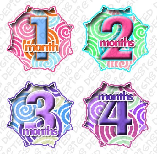 SWIRLS Onesie stickers are great baby shower gift!;Adhesive sticker is super thin, and waterproof.;Flexible and tear proof allowing it to bend with the babies movement.;Baby month stickers are used placed on the baby's shirt, as a photo prop for pictures.;Extra durable adhesive is completely removable.