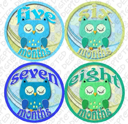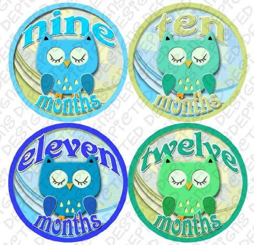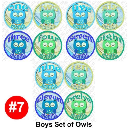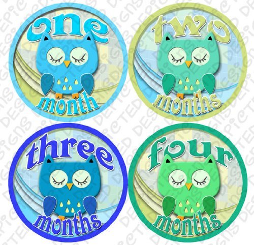 BOYS OWLS Onesie stickers are great baby shower gift!;Adhesive sticker is super thin, and waterproof.;Flexible and tear proof allowing it to bend with the babies movement.;Baby month stickers are used placed on the baby's shirt, as a photo prop for pictures.;Extra durable adhesive is completely removable.