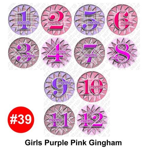 PURPLE PINK GINGHAM Onesie stickers are great baby shower gift!;Adhesive sticker is super thin, and waterproof.;Flexible and tear proof allowing it to bend with the babies movement.;Baby month stickers are used placed on the baby's shirt, as a photo prop for pictures.;Extra durable adhesive is completely removable.