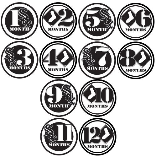 WHITE SOX BASEBALL Onesie stickers are great baby shower gift!;Adhesive sticker is super thin, and waterproof.;Flexible and tear proof allowing it to bend with the babies movement.;Baby month stickers are used placed on the baby's shirt, as a photo prop for pictures.;Extra durable adhesive is completely removable.