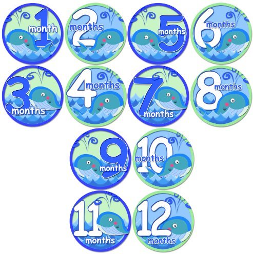 BABY WHALES Onesie stickers are great baby shower gift!;Adhesive sticker is super thin, and waterproof.;Flexible and tear proof allowing it to bend with the babies movement.;Baby month stickers are used placed on the baby's shirt, as a photo prop for pictures.;Extra durable adhesive is completely removable.